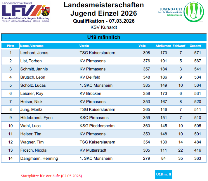Die Veranstaltung begann um 9:00 Uhr und endete gegen 17:50 Uhr. Insgesamt präsentierte sich der KV Dellfeld als hervorragender Gastgeber und trug maßgeblich zu einem gelungenen Spieltag der Landesjugendrunde in Rheinland-Pfalz bei.